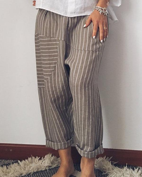 Casual Loose Linen Drawstring Elasticized Pants